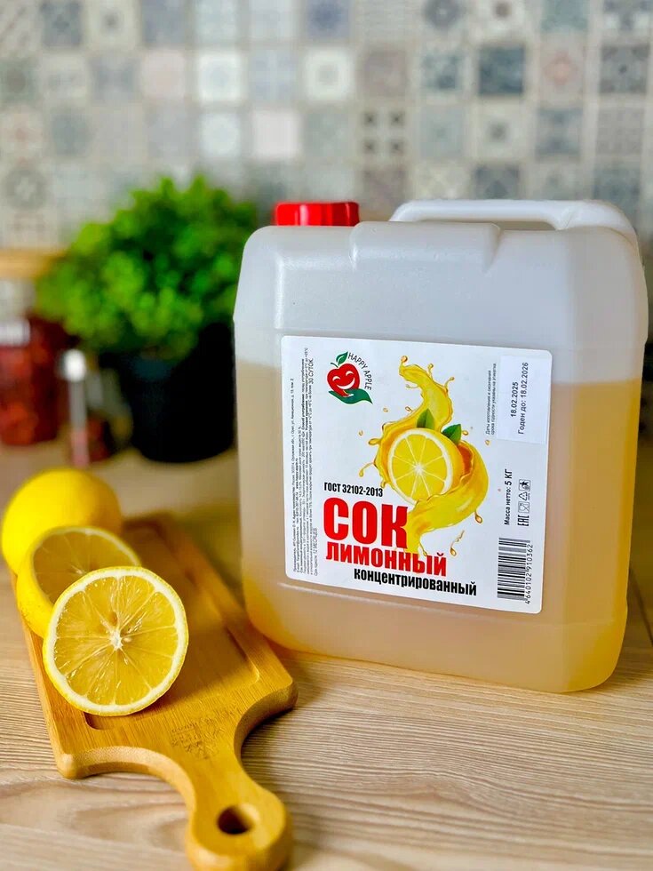 Наименование продукта: Сок лимонный концентрированный осветлённый. Cоответствует ГОСТ 32102-2013, ТР ТС 021/2011, ТР ТС 022/2011, ТР ТС 023/2011.