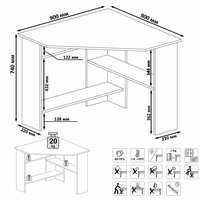 Угловой компьютерный стол КСТ-02 — функциональный вариант обустройства полноценной рабочей или учебной зоны. Просторная столешница разместит монитор или ноутбук, а также всё то, что необходимо держать под рукой для быстрого доступа. Несколько разноплановых полок станут удобной системой хранения книг, бумаг и прочей канцелярии.