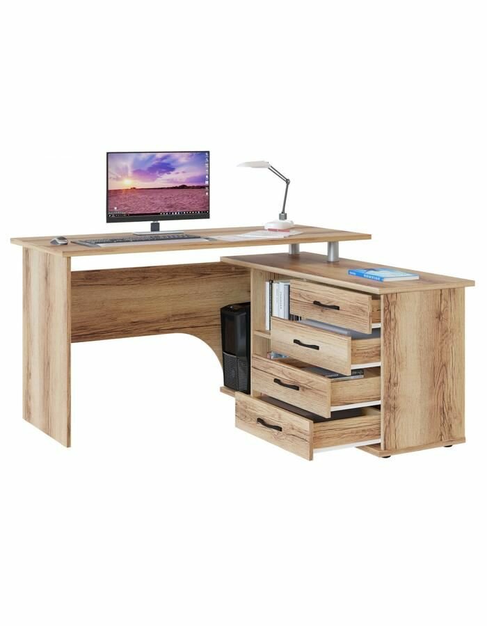 Компьютерный, письменный угловой, стол Хьюстон с ящиками, с полками, с тумбой, 140х127х75 см, Дуб Делано, Правый: сравнение цен, характеристики, фото, актуальное наличие и цены.