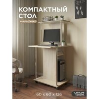 • Размер стола (Ш х Г х В): 60 х 60 х 126 см. • Высота от столешницы до верхней полочки - 48 см. • Высота от полочки над системным блоком до столешницы - 17 см. • Высота от пола до столешницы - 78 см. • Высота проема под системный блок - 50 см, ширина проема - 24 см. • Проем под монитор позволяет разместить экран с диагональю до 20".