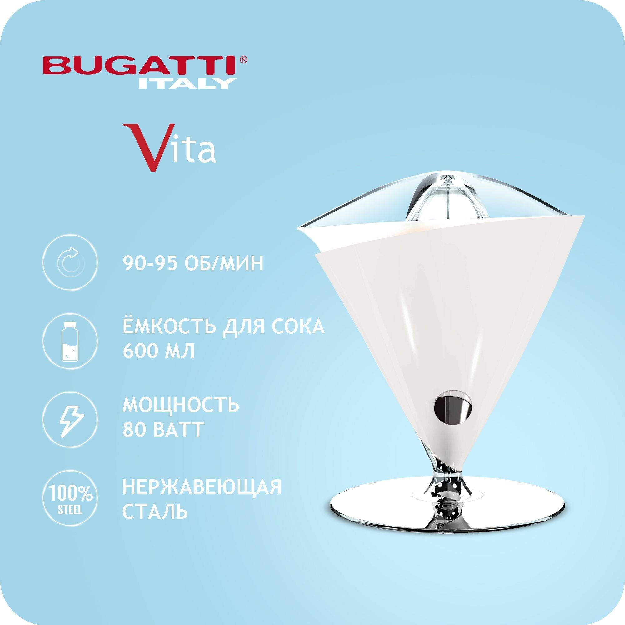 | Дополнительная информация | поворот корпуса на 60 градусов; количество конусных насадок: 2; резервуар для сока: встроенный |