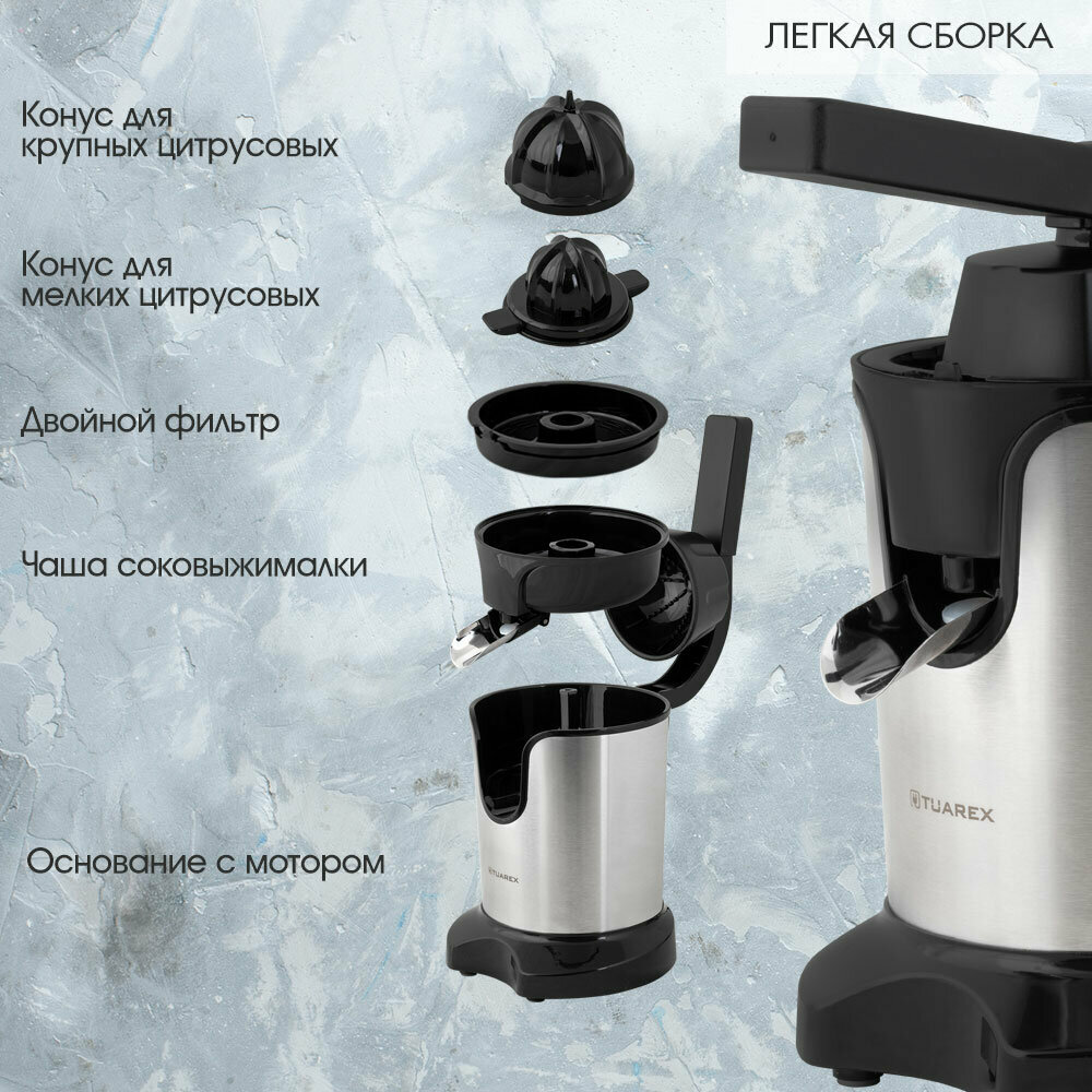 | Подробная комплектация | Соковыжималка, Насадка для крупных цитрусовых, Насадка для мелких цитрусовых, Руководство по эксплуатации, Гарантийный талон |