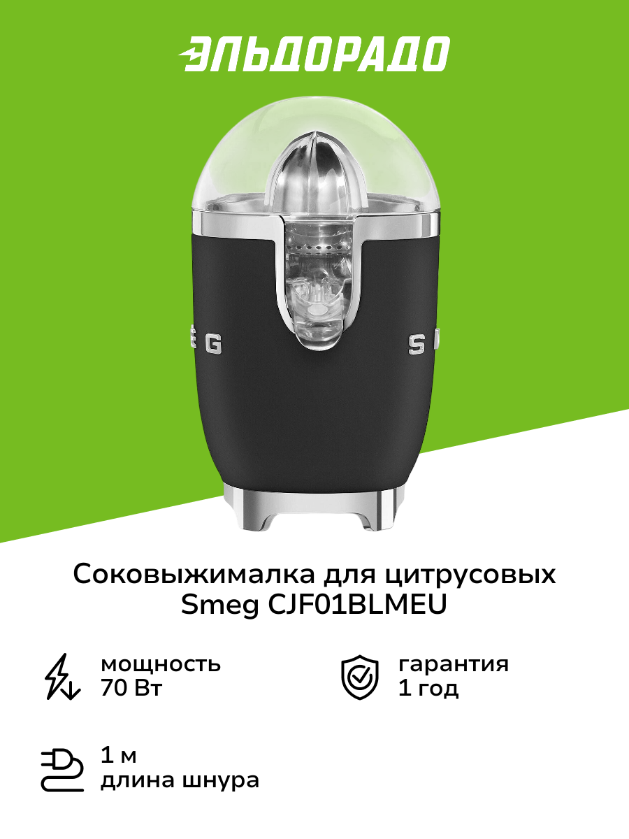 Купить Соковыжималка для цитрусовых Smeg CJF01BLMEU черная матовая с доставкой по всей России. Соковыжималка для цитрусовых Smeg CJF01BLMEU черная матовая: сравнение цен, характеристики, фото, актуальное наличие и цены.