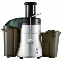 тип: центробежная, мощность: 800 Вт, тип шнековой соковыжималки: вертикальная, объем резервуара для сока: 1 л, объем резервуара для мякоти: 5 л, количество скоростей: 2, материал корпуса: нержавеющая сталь, пластик, особенности: защита от перегрузки, особенности конструкции: прорезиненные ножки, сепаратор для пены