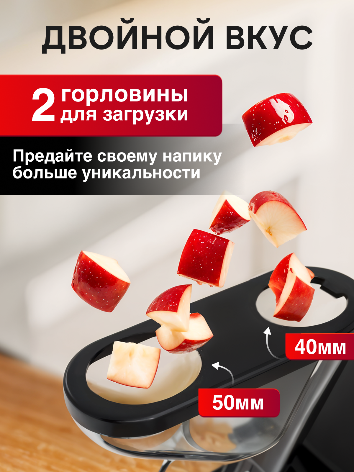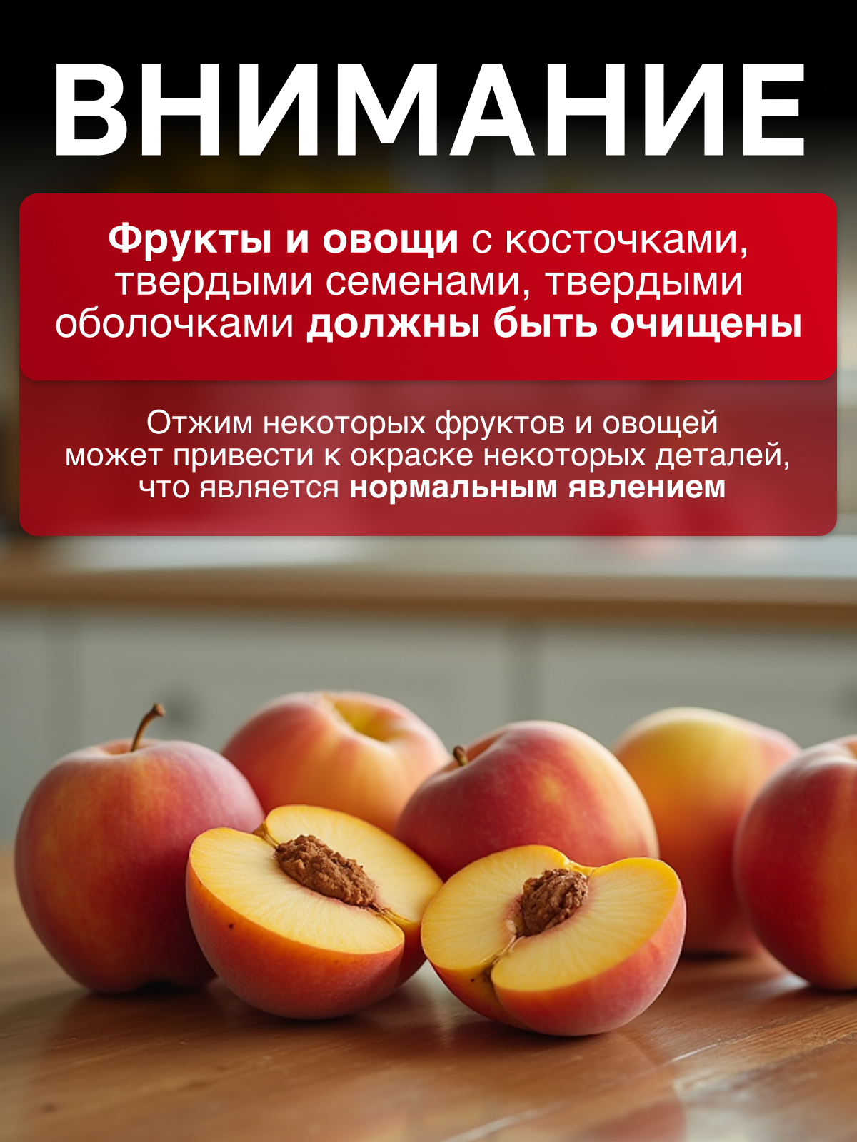 | Особенности | автоматический выброс мякоти, защита от перегрузки, плавный запуск двигателя, реверс, система «капля-стоп» |
