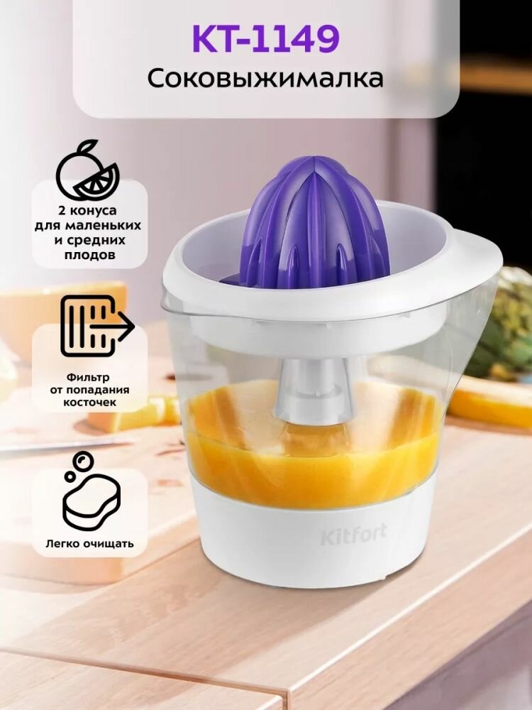Соковыжималка Китфорт КТ-1149, вертикальная, 40Вт, пластик, цвет белый/фиолетовый: сравнение цен, характеристики, фото, актуальное наличие и цены.