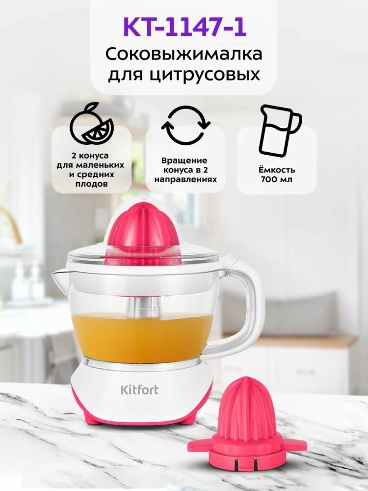 Купить Соковыжималка КТ-1147, для цитрусовых, пластик, 40Вт, белая/темно-розовая с доставкой по всей России. Соковыжималка КТ-1147, для цитрусовых, пластик, 40Вт, белая/темно-розовая: сравнение цен, характеристики, фото, актуальное наличие и цены.