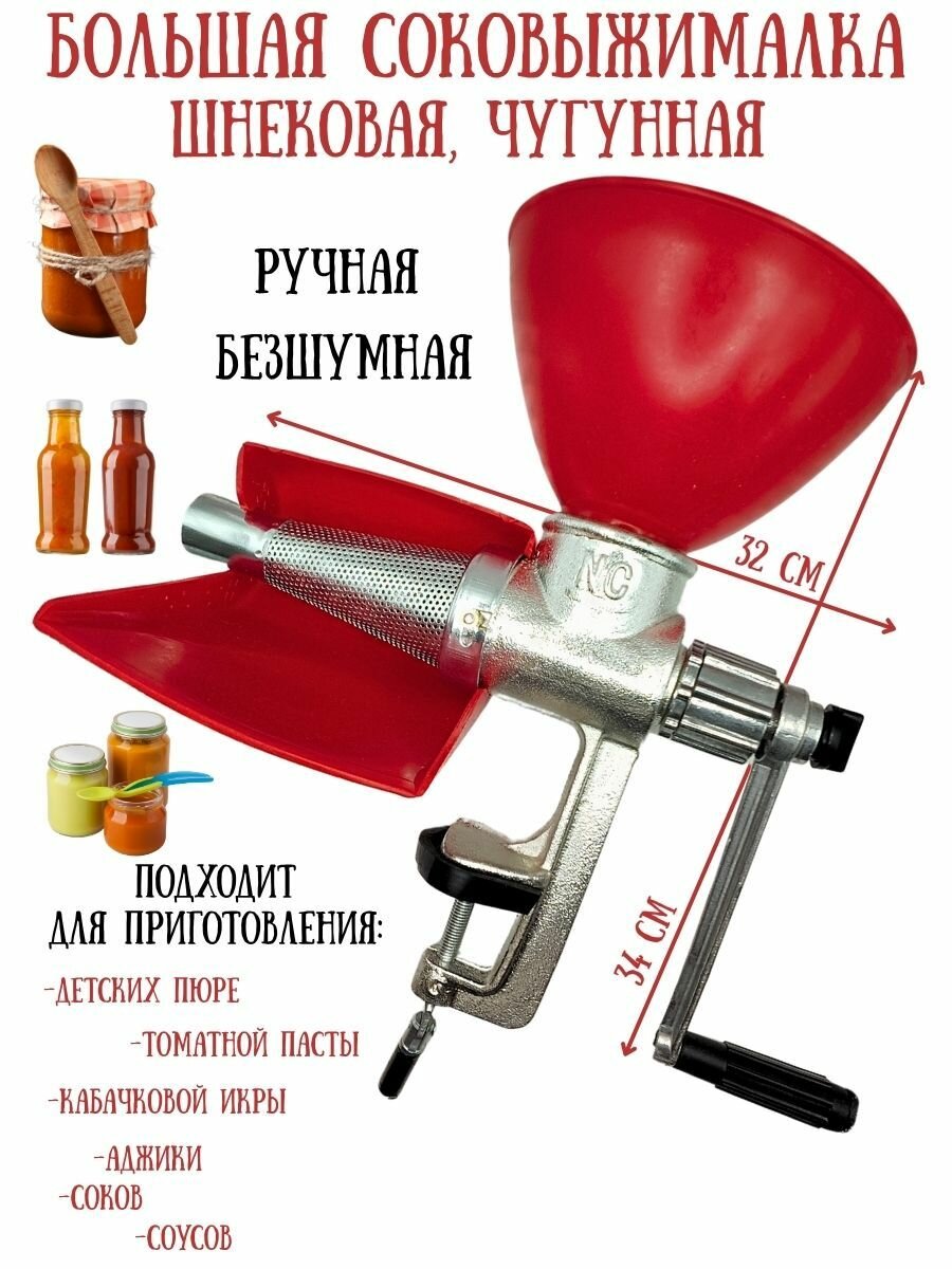 Соковыжималка ручная шнековая для овощей и фруктов чугунная большая для домашнего томатного сока, детских пюре, соусов, кабачковой икры, аджики: сравнение цен, характеристики, фото, актуальное наличие и цены.