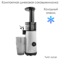 Купить Соковыжималка шнековая Clever&Clean Twist Juicer Silver. Для цитрусовых, для овощей и фруктов. С реверсом. Серый металлик с доставкой по всей России.