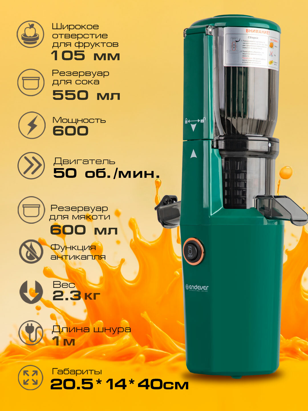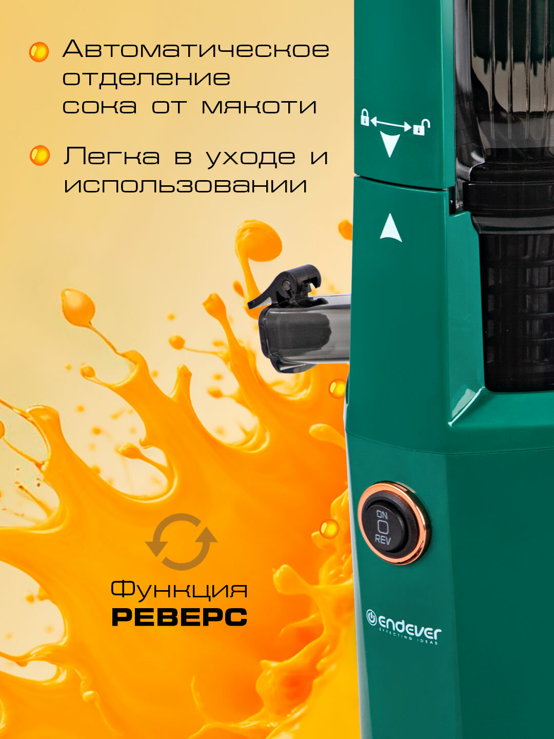 | Особенности | автоматический выброс мякоти, реверс, регулировка количества мякоти, система «капля-стоп» |