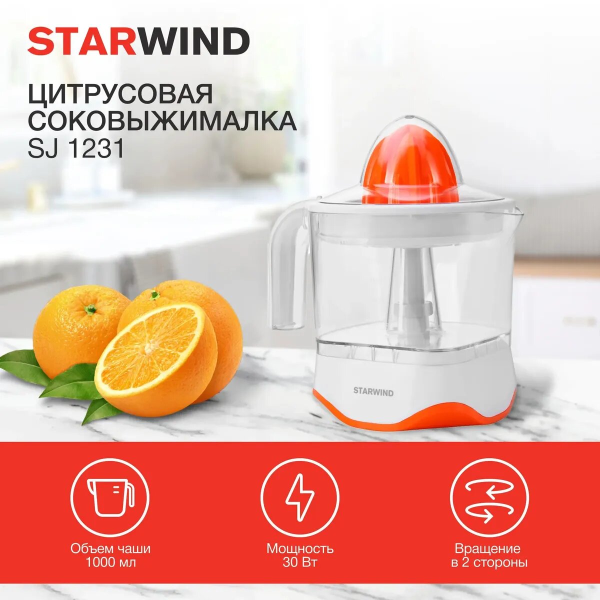 Купить Соковыжималка StarWind SJ 1231, цитрусовая, оранжевый и прозрачный с доставкой по всей России. Соковыжималка StarWind SJ 1231, цитрусовая, оранжевый и прозрачный: сравнение цен, характеристики, фото, актуальное наличие и цены.