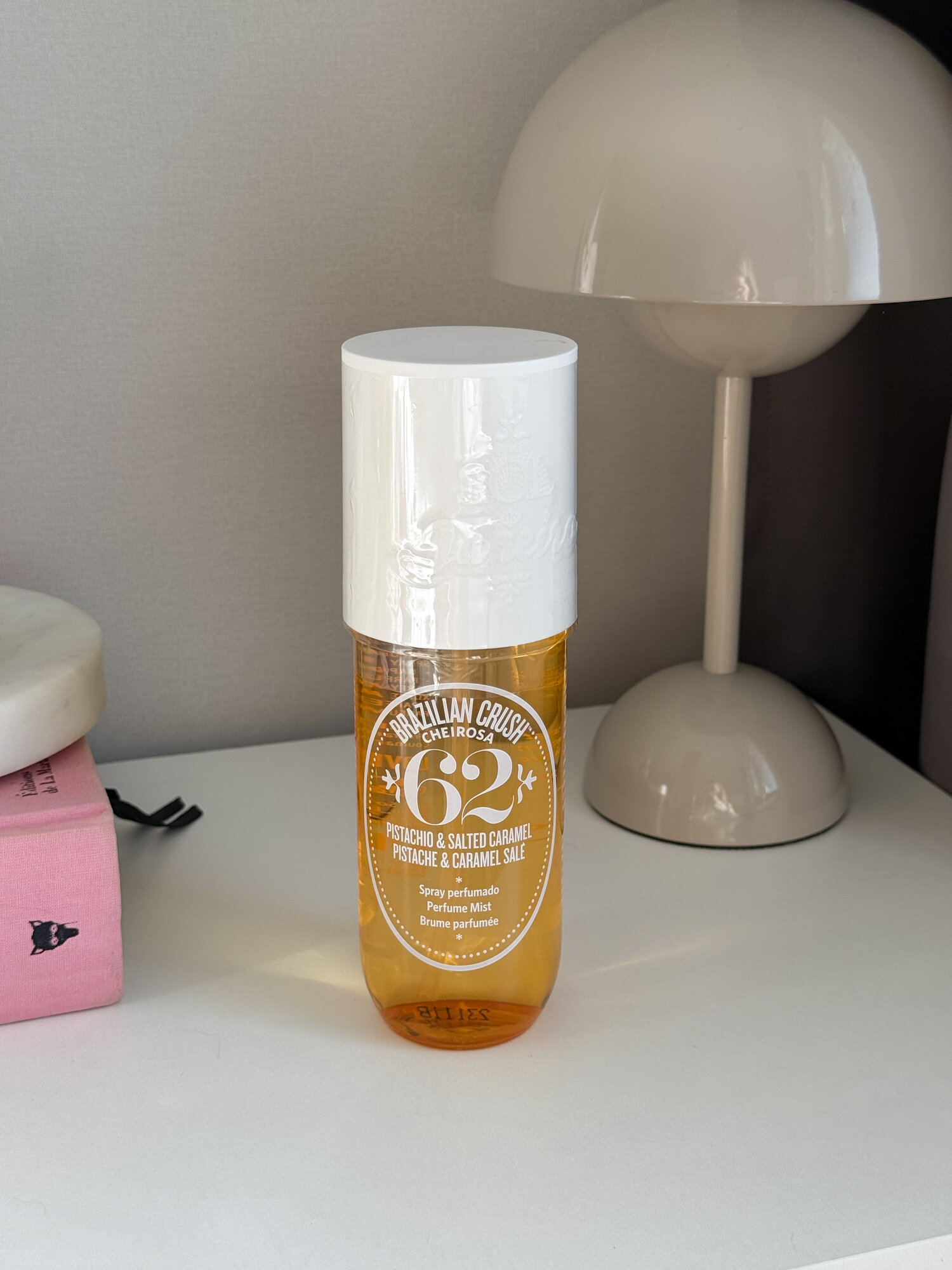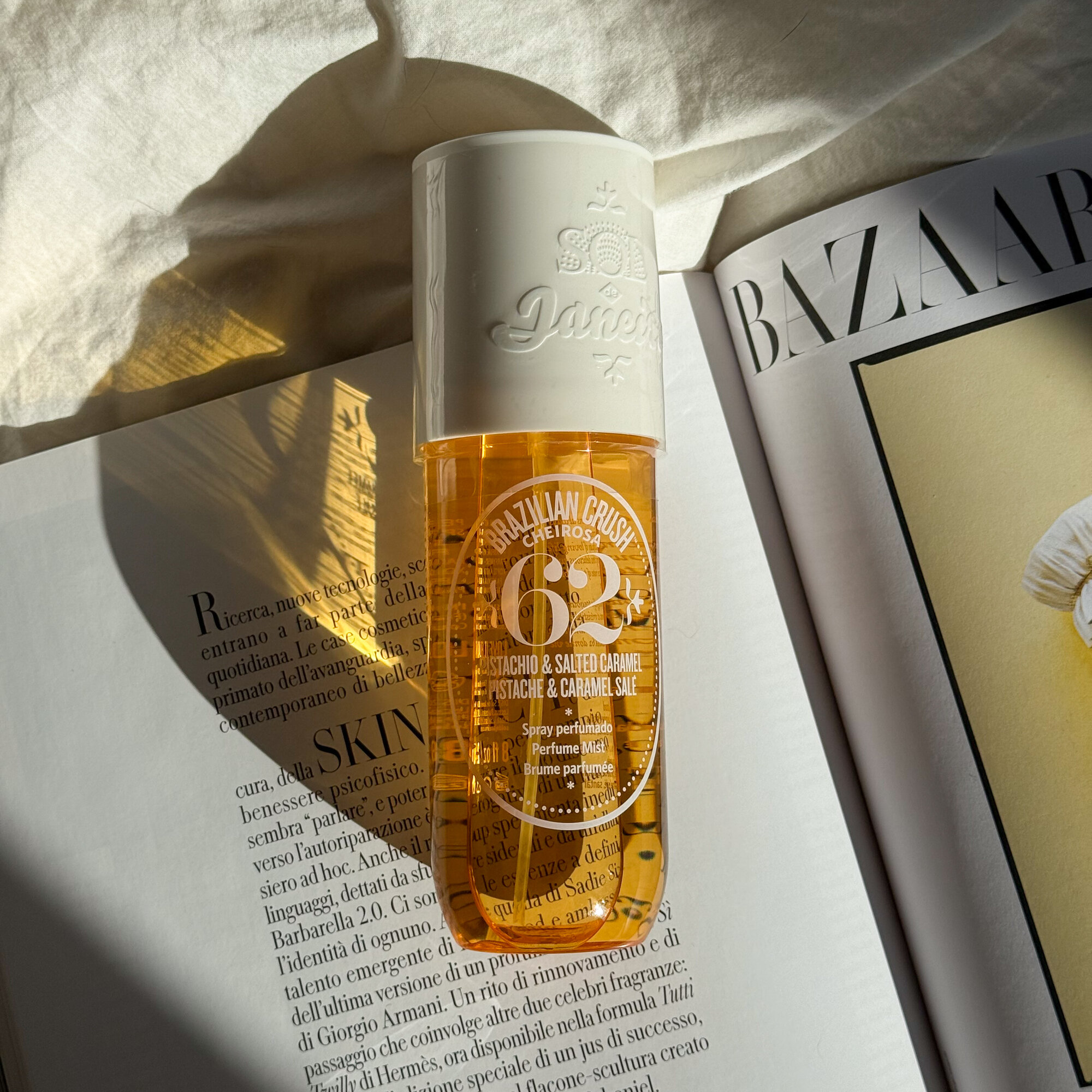 SOL DE JANEIRO 62 - это спрей мист для тела и волос, который сочетает в себе ноты фисташки и аромат соленой карамели. Этот продукт является одним из бразильских секретов красоты, благодаря которому бразильские женщины пахнут невыразимо соблазнительно от восхода до заката.