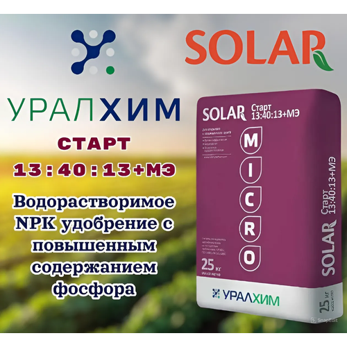 Водорастворимое NPK удобрение с повышенным содержанием фосфора. Преимущества Специально подобранный состав элементов питания на начальных этапах роста растений стимулирует развитие корневой системы, повышает уровень усвоения питательных веществ, активирует процессы клеточного деления, обеспечивает растение энергией и оптимизирует обмен веществ. На стадиях бутонизации-цветения ускоряет образование репродуктивных органов, способствует повышению урожайности и качества получаемой сельскохозяйственной продукции. Удобрение повышает устойчивость к негативным факторам среды (пестицидный стресс, неблагоприятные погодные условия, поражение вредителями и болезнями) и может быть использовано на всех культурах. Не содержит натрия, хлора и тяжелых металлов, изготовлен из экологически чистого сырья, быстро и полностью растворяется в воде. Содержит микроэлементы, в том числе в высокоэффективной хелатной форме (эдта). Идеально подходит для листовых подкормок культур открытого грунта. Рекомендовано также для применения в системах фертигации и для сезонных (грунтовых) теплиц. Массовая доля общего азота (N) 13% в том числе массовая доля нитратного азота 4,5% массовая доля аммонийного азота 8,5% массовая доля амидного азота - Массовая доля водорастворимых фосфатов в пересчете на Р₂О₅ 40% Массовая доля водорастворимого калия в пересчете на K₂O 13% Массовая доля сульфатов в пересчете на S - Массовая доля магния в пересчете на МgО - Массовая доля нерастворимого остатка, не более 0,1% Рассыпчатость 100% Массовая доля микроэлементов (* – в хелатной форме), не менее, % – бор (В) 0,02 – медь (Сu)* 0,01 – железо (Fe)* 0,1 – марганец (Мn)* 0,05 – молибден (Мо) 0,01 – цинк (Zn)* 0,01
