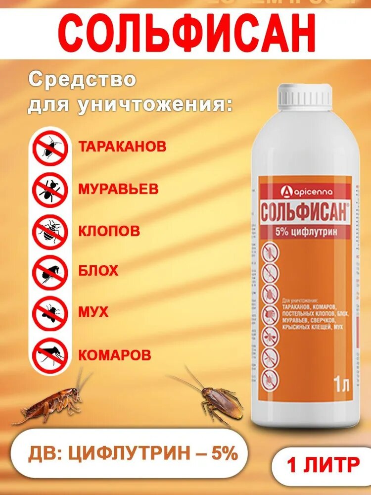 Сольфисан средство от клопов, тараканов, блох, муравьев, крысиных клещей, 1 литр: сравнение цен, характеристики, фото, актуальное наличие и цены.
