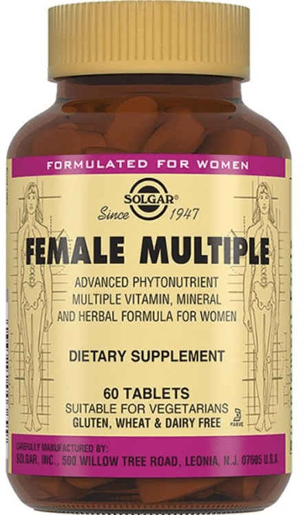 | Состав | магний (оксид магния, цитрат магния, бисглицинат магния), кальций (карбонат кальция, цитрат кальция, бисглицинат кальция), целлюлоза микрокристаллическая (носитель), бисглицинат калия, витамин С (аскорбиновая кислота, аскорбат натрия), холинбитартрат, мальтодекстрин (носитель), растительная целлюлоза [кроскарамеллоза (носитель), гидроксипропилметилцеллюлоза (носитель)], инозитол, магниевая соль стеариновой кислоты (антислеживающий агент), комплекс цитрусовых биофлавоноидов, бисглицинат железа, стеариновая кислота (стабилизатор), диоксид кремния (антислеживающий агент), краситель - порошок черной моркови или запатентованная смесь (концентрат редиса, чёрной смородины, яблока, экстракт спирулины), цинк (оксид цинка, бисглицинат цинка), глицерин (влагоудерживающий агент), экстракт корня американского женьшеня, экстракт семян расторопши пятнистой, экстракт корня дудника китайского, экстракт листьев толокнянки обыкновенной, экстракт ягод витекса священного, экстракт корня и корневища клопогона кистевидного, изофлавоны сои, никотиновая кислота, D-альфа-токоферола сукцинат, селенметионин, бисглицинат марганца, диоксид титана (краситель), бета-каротин, бисглицинат хрома, D-пантотенат кальция, пиридоксина гидрохлорид, молибдат натрия, холекальциферол, тиамина мононитрат, рибофлавин, медь (оксид меди, бисглицинат меди), йодид калия, маннит (носитель), витамин К (фитонадион), птероилглутаминовая кислота, сахарный колер (краситель), цианкобламин, D-биотин. |