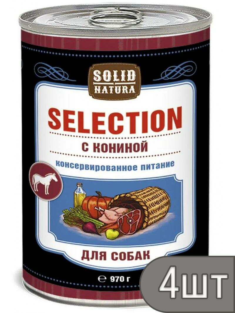 Купить Solid Natura Набор 4 шт Консервы для собак Solid Natura Selection Конина, 970г 3.88 кг с доставкой по всей России.