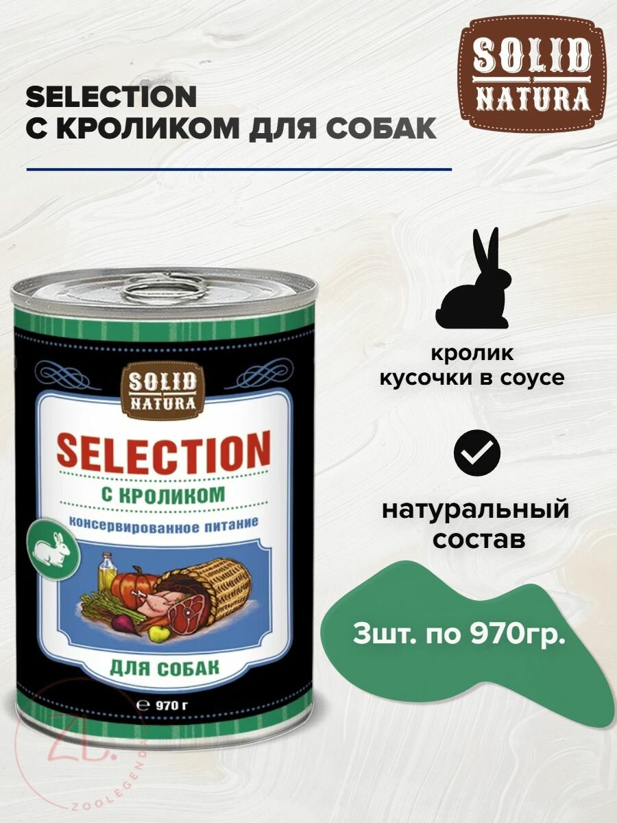 Купить Solid Natura Selection консервы для собак Кролик 970гр*3шт с доставкой по всей России.