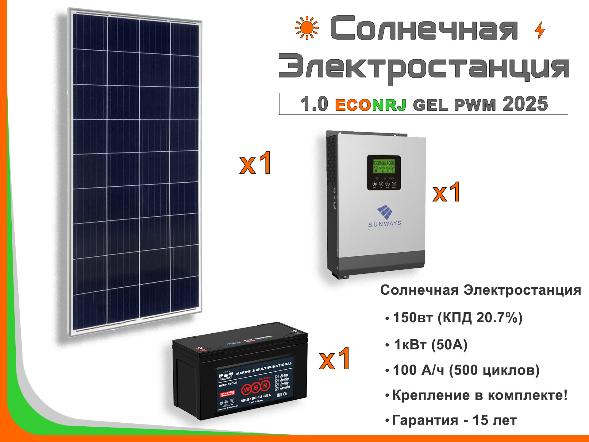 Купить Солнечная электростанция ECONRJ 1,0 кВт*ч в сутки GEL PWM 2025 с доставкой по всей России. Солнечная электростанция ECONRJ 1,0 кВт*ч в сутки GEL PWM 2025: сравнение цен, характеристики, фото, актуальное наличие и цены.