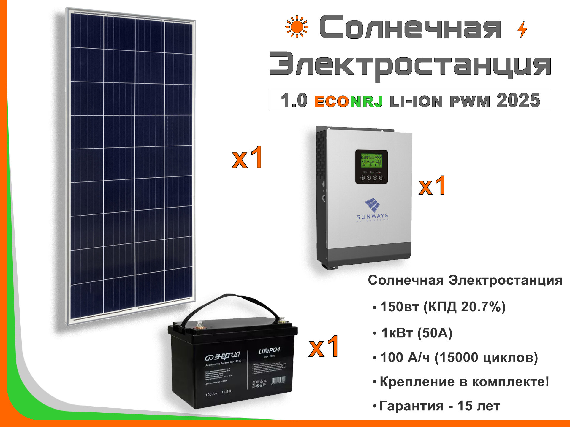 Купить Солнечная электростанция ECONRJ 1,0 кВт*ч в сутки Li-Ion PWM 2025 с доставкой по всей России. Солнечная электростанция ECONRJ 1,0 кВт*ч в сутки Li-Ion PWM 2025: сравнение цен, характеристики, фото, актуальное наличие и цены.