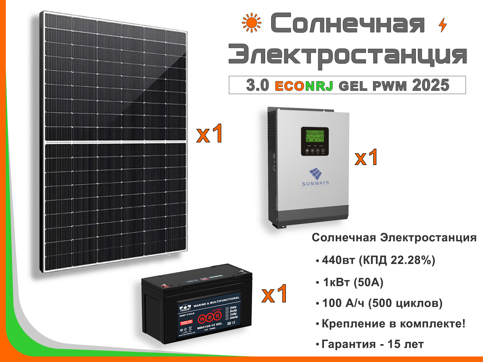 Купить Солнечная электростанция ECONRJ 3.0 кВт*ч в сутки GEL PWM 2025 моно с доставкой по всей России. Солнечная электростанция ECONRJ 3.0 кВт*ч в сутки GEL PWM 2025 моно: сравнение цен, характеристики, фото, актуальное наличие и цены.