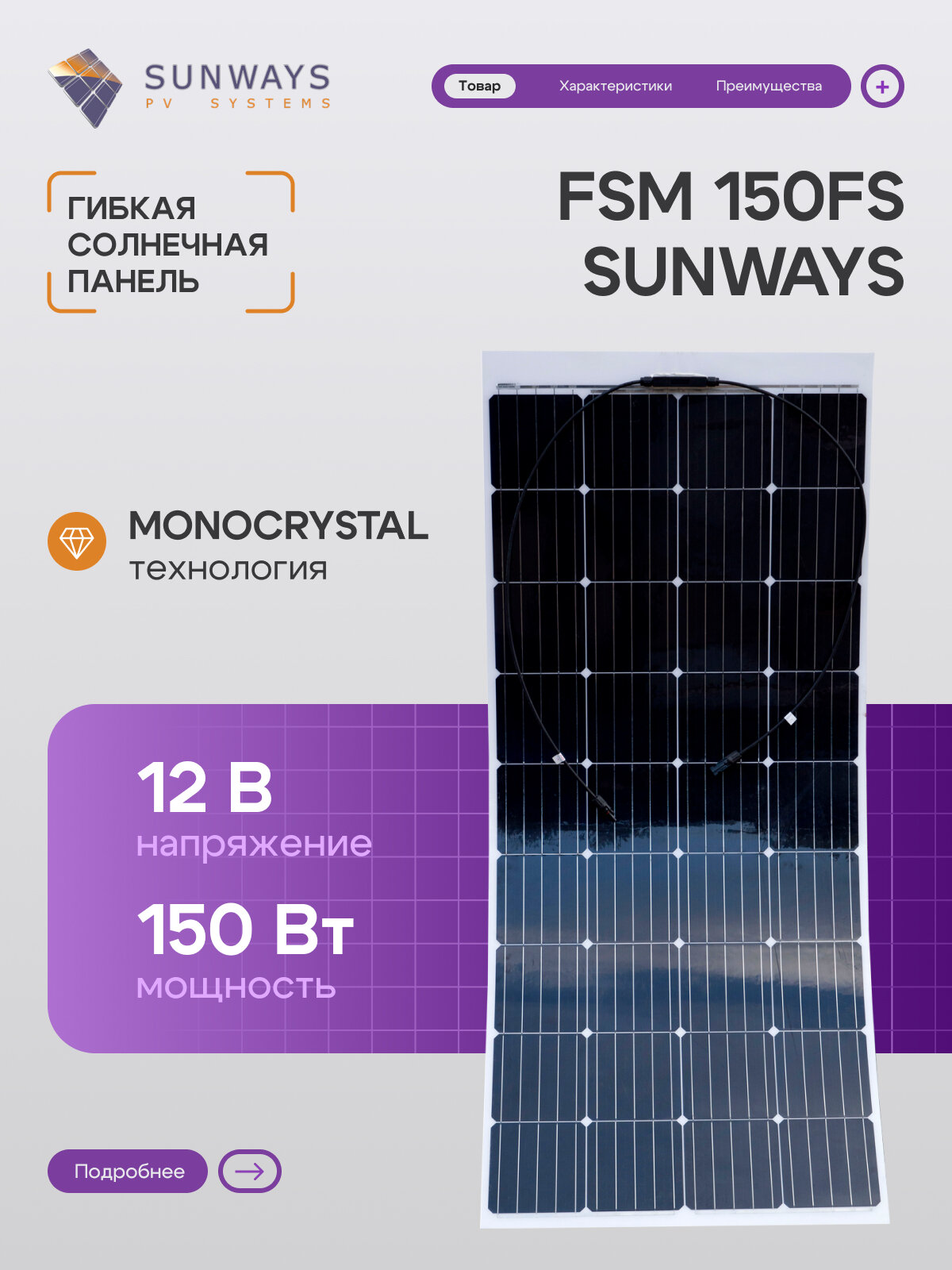 Солнечная панель 150вт FSM 150FS Sunways, солнечная батарея для дома, для дачи, 12В, 1шт.: сравнение цен, характеристики, фото, актуальное наличие и цены.