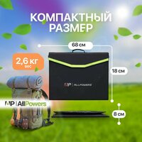Складная и портативная: на 1/3 легче, чем солнечная панель той же мощности другого производителя. Общая мощность увеличена на 1/3 по сравнению с тем же размером солнечной панели. Размер в сложенном виде всего 68 x 51 x 2 см, 2,6 кг, отлично подходит для путешествий без доступа к электричеству и не займет много места.
