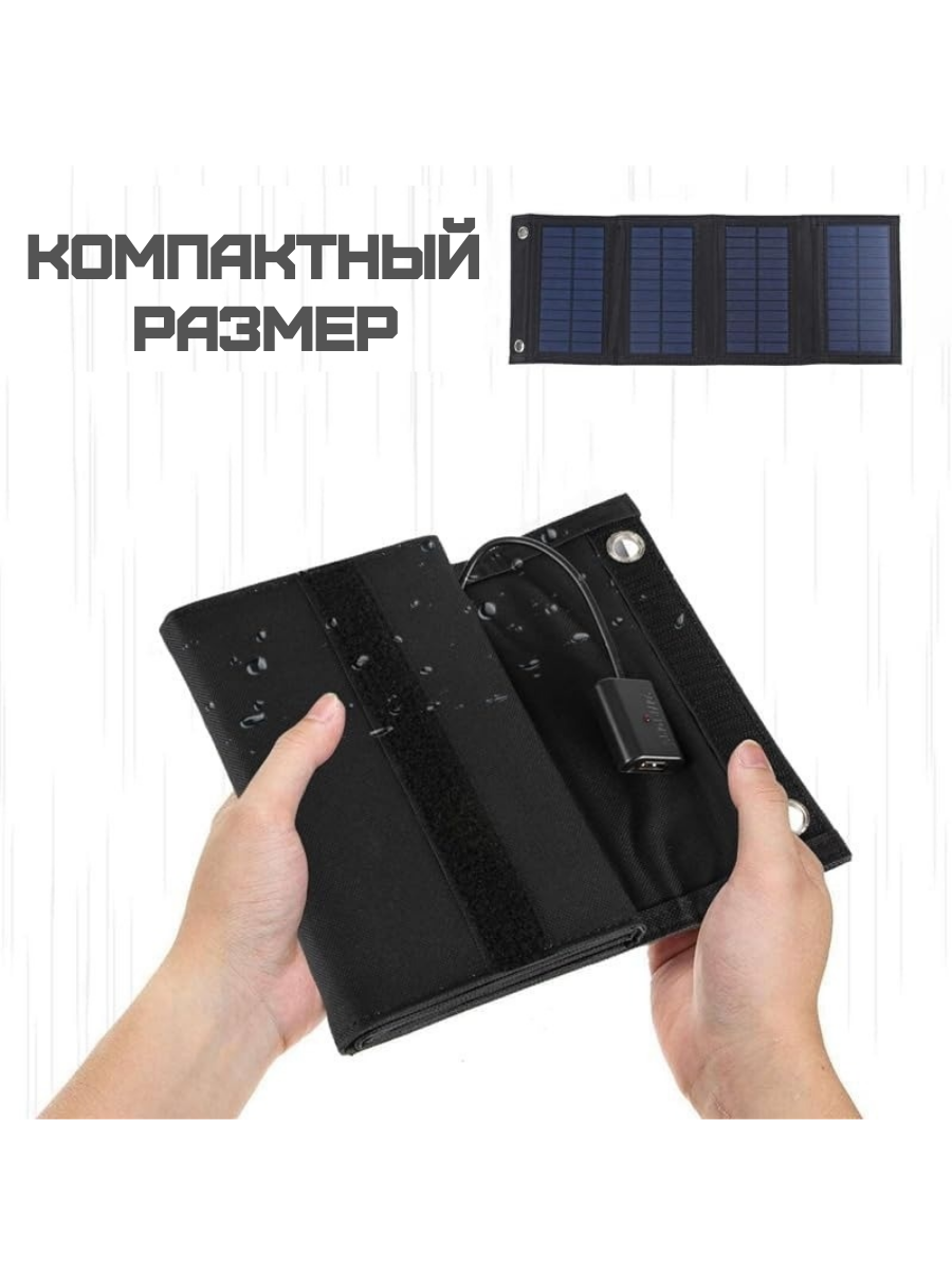 Туристическая портативная солнечная электростанция оснащена монокристаллическим кремнием. Это позволяет получать максимальное количество энергии даже при низком уровне солнечной активности. Панель имеет водонепроницаемость IPX4, что обеспечивает защиту от влаги и пыли. Солнечная панель для туризма и для дома на солнечных батареях легкая и компактная, ее также можно привязать к рюкзаку с помощью защитной пряжки.