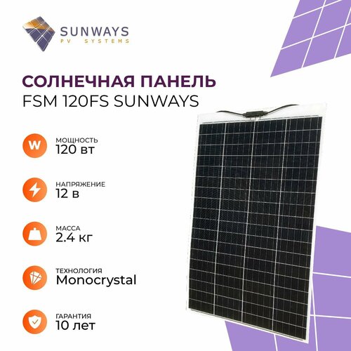 Солнечная панель 120Вт FSM 120FS Sunways, солнечная батарея для дома, для дачи, 12В, 1шт.: сравнение цен, характеристики, фото, актуальное наличие и цены.