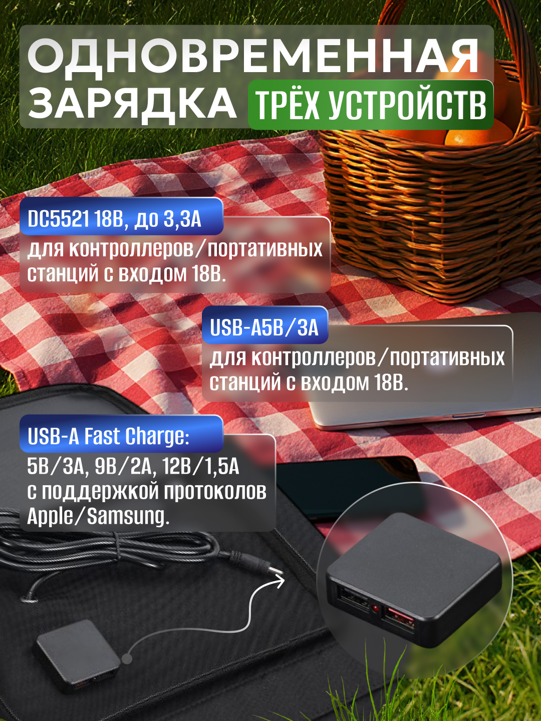 Купить Солнечная панель складная 60Вт, 18В, USB fast charge, подходит для портативных электростанций с доставкой по всей России.