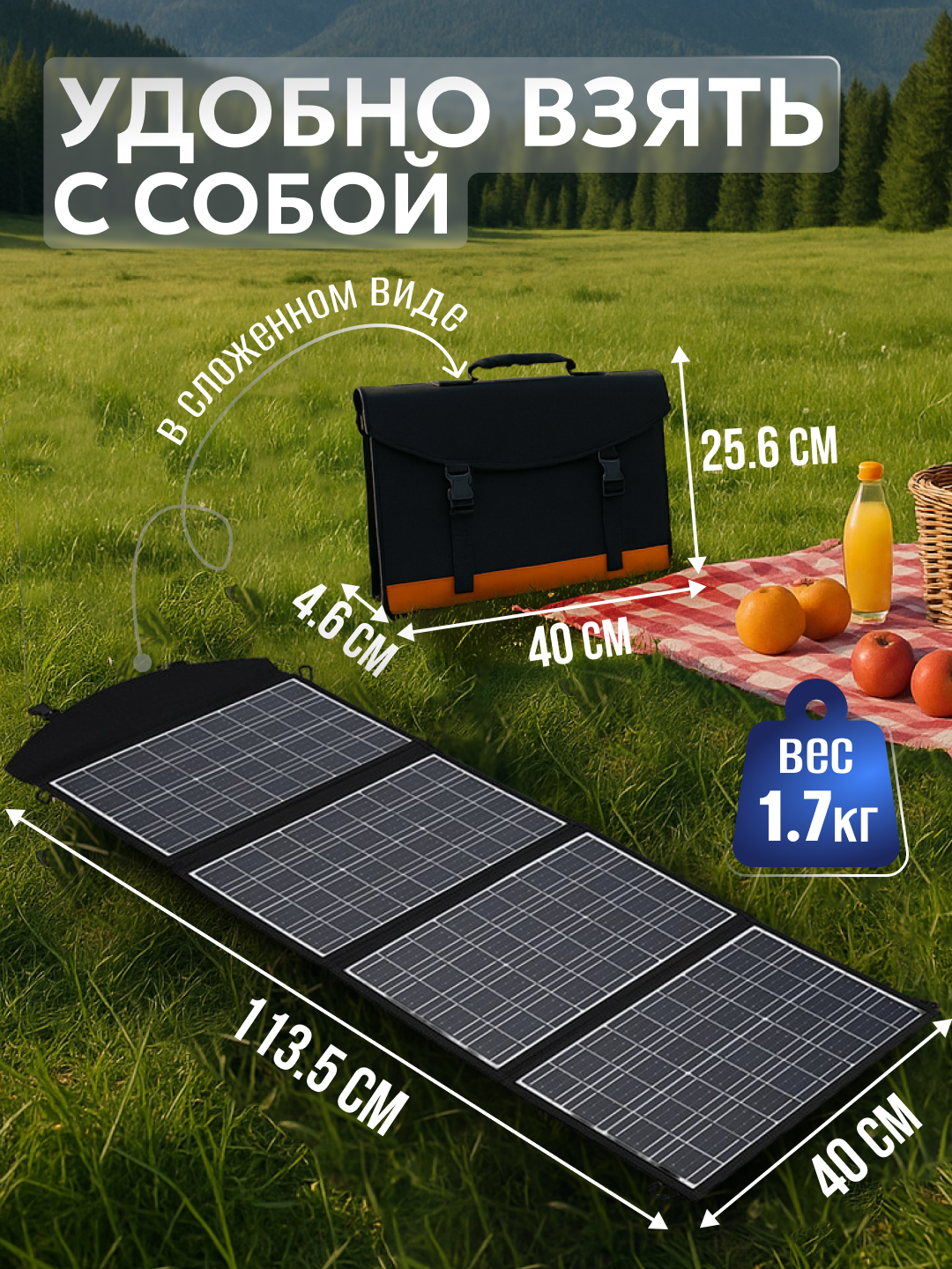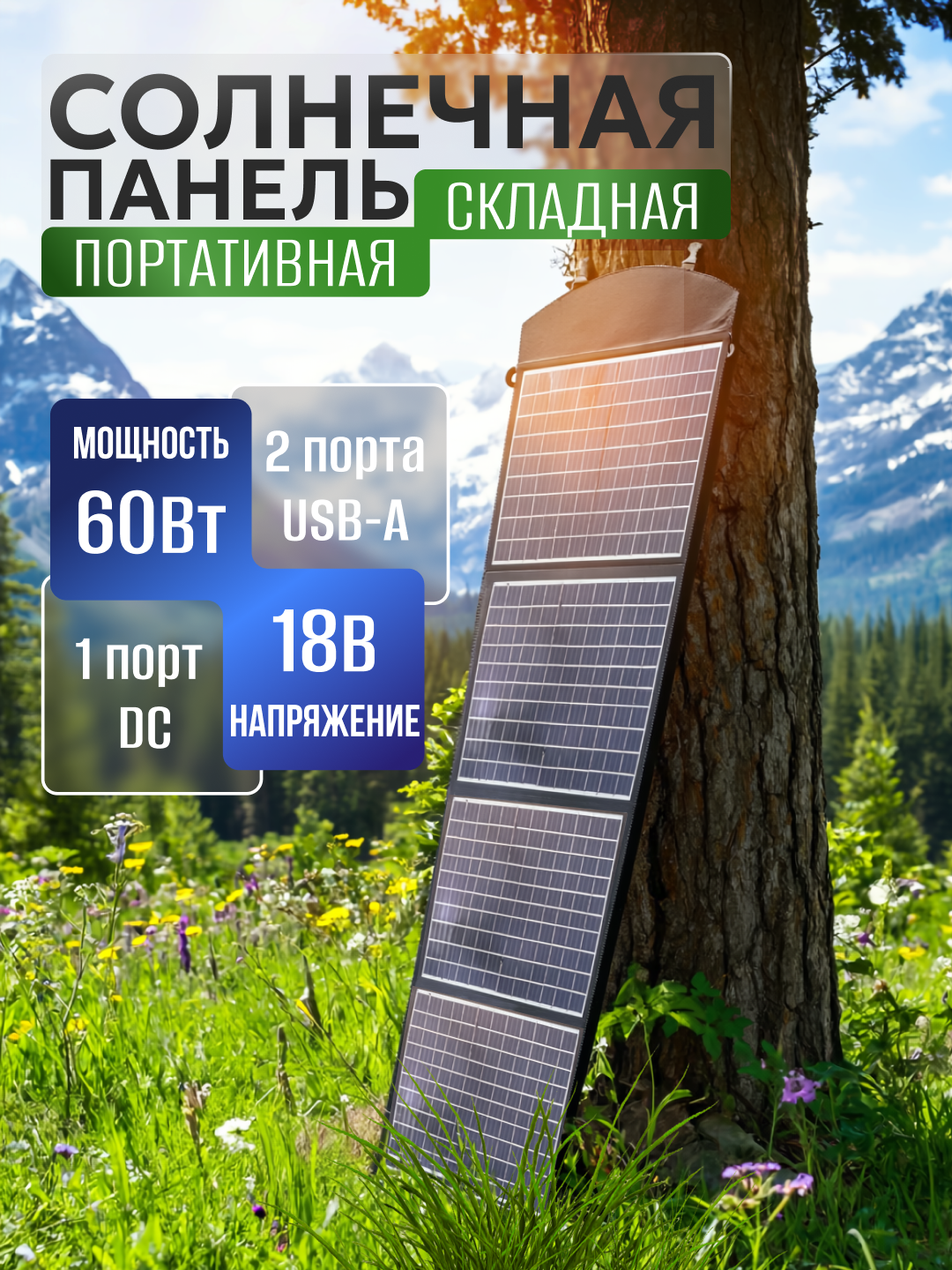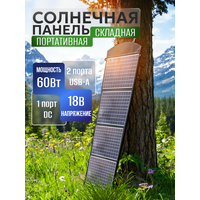 Солнечная панель складная 60Вт, 18В, USB fast charge, подходит для портативных электростанций: сравнение цен, характеристики, фото, актуальное наличие и цены.
