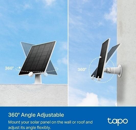Солнечная панель для камер наблюдения Tapo с батарейным питанием от TP-Link. Всепогодная панель имеет длинный соединительный кабель и регулируемую на 360° монтажную ножку. Что оно может? Подключите солнечную панель к совместимой камере Tapo с питанием от аккумулятора, и необходимость подзарядки аккумулятора в весенние и летние месяцы практически полностью отпадает. В зависимости от использования камеры, всего лишь 30-минутной ежедневной дозы солнечной энергии может быть достаточно, чтобы камера работала изо дня в день. Устойчивая к атмосферным воздействиям панель легко устанавливается благодаря длинному соединительному кабелю и регулируемой монтажной ножке. Обратите внимание: аккумуляторы камеры не заряжаются при минусовых температурах. Технические характеристики: Тип ячейки: монокристаллическая Напряжение: 5,2 В макс. Мощность зарядки: макс. 4,5 Вт Разъем для зарядки: microUSB Длина кабеля: 4 м Класс IP: IP65 Размеры: 237,96 х 174,85 х 17,5 мм. Вес: 481,7 г Рабочая температура панели: -20~45 Совместимость: Тапо C400, Тапо C420, Тапо C425 Зачем мне это нужно? Бесперебойная и чистая солнечная энергия для камер Tapo с батарейным питанием, таких как Tapo C425, Tapo C420 и Tapo C400. Мощность зарядки до 4,5 Вт. Монокристаллический тип ячеек в панели. Благодаря классификации IP65 панель защищена от атмосферных воздействий. Регулируемая на 360° монтажная ножка и четырехметровый кабель обеспечивают гибкую установку. Что в коробке? Солнечная панель Tapo A200 Монтажная ножка Шаблон установки Водонепроницаемое уплотнение Крепежные винты и анкеры Краткое пособие Будет ли работать у меня? Панель совместима с камерами Tapo C400, Tapo C420 и Tapo C425.