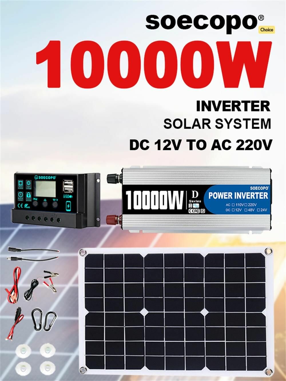 Купить Солнечная система Soecopo, инверторная, 10000Вт, DC12В, до 220В с доставкой по всей России. Солнечная система Soecopo, инверторная, 10000Вт, DC12В, до 220В: сравнение цен, характеристики, фото, актуальное наличие и цены.