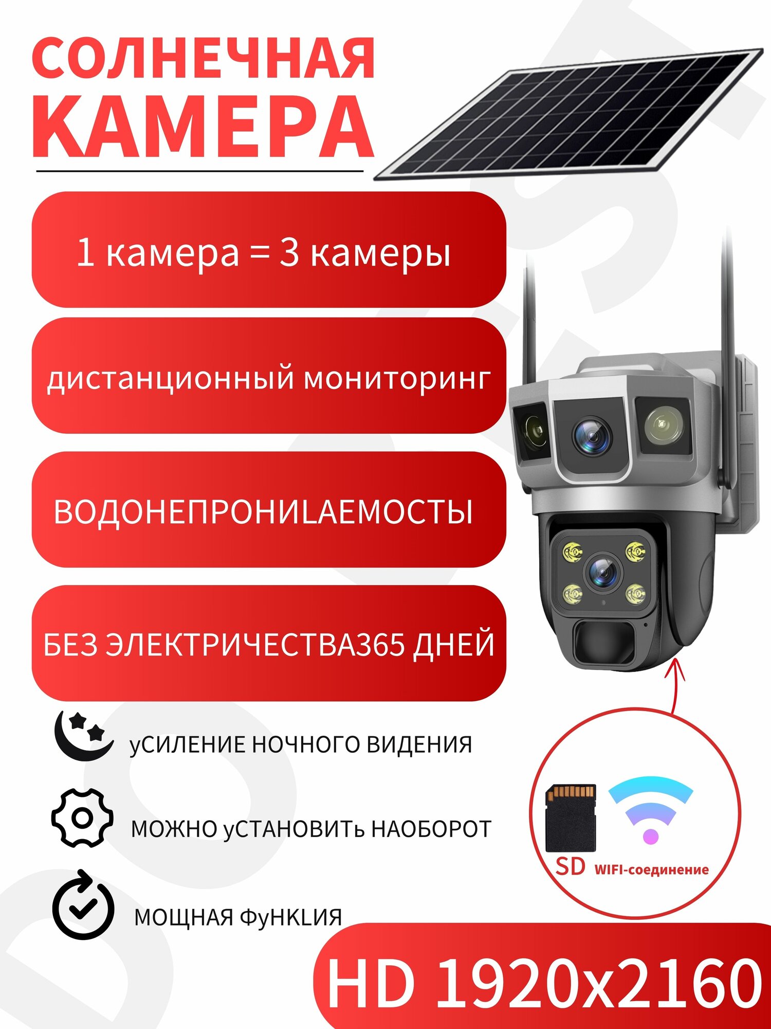 Купить Солнечная Wi-Fi камера с двумя линзами и тремя экранами для улицы/дома + ночное видение с доставкой по всей России.