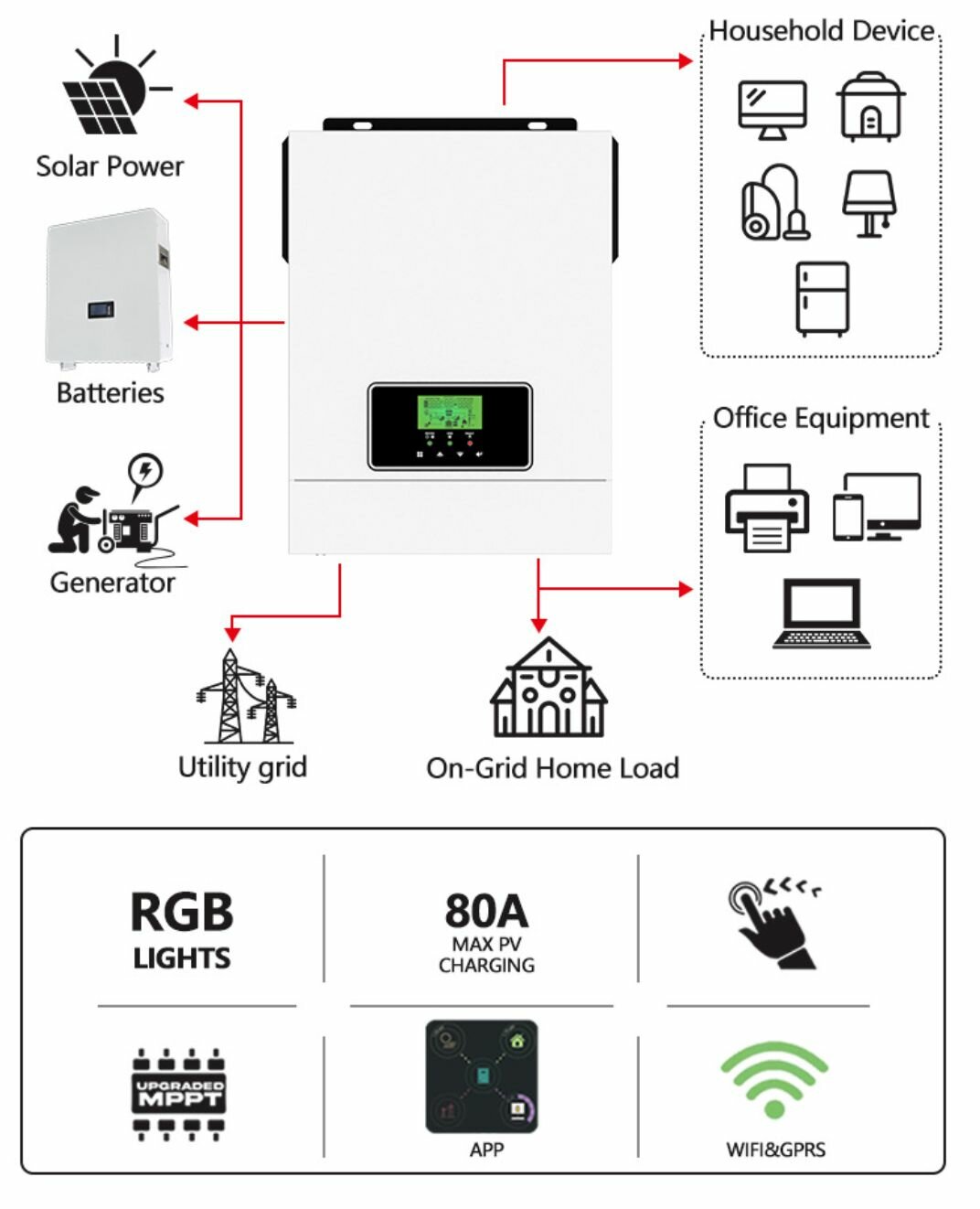 Приобретая этот гибридный солнечный инвертор, вы получаете не только мощное решение для преобразования солнечной энергии, но и современное устройство, которое сделает вашу жизнь комфортнее и экологичнее.