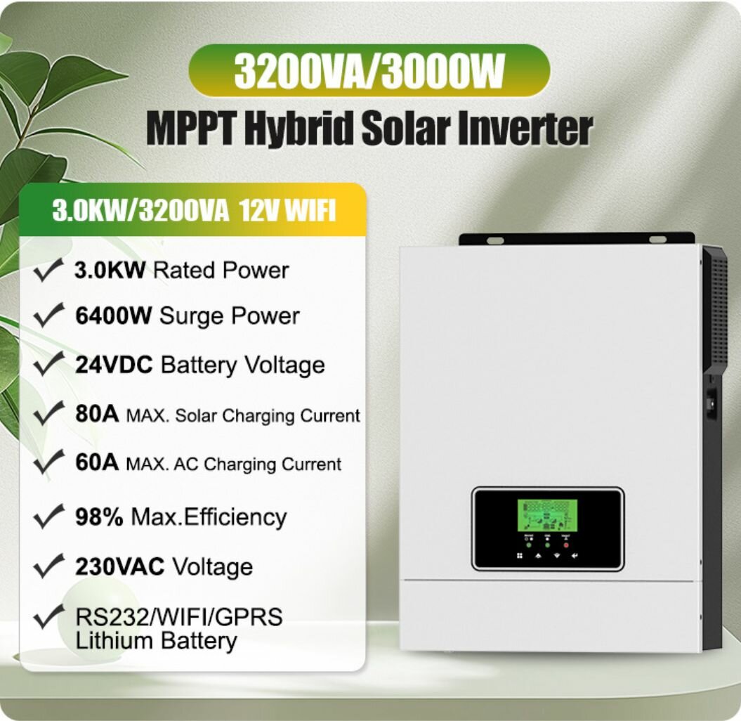 Представляем вашему вниманию мощный солнечный инвертор с характеристиками 3,2 кВА и 24V, обладающий функцией MPPT и поддерживающий WIFI. Этот гибридный сетевой инвертор идеально подходит для использования в домашних условиях, а также в мобильных решениях, например, в домах на колесах.