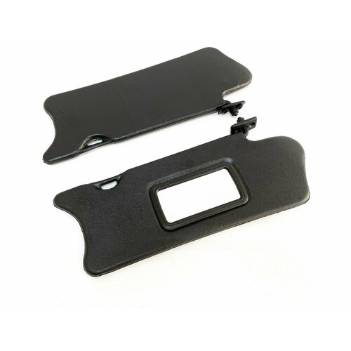 Комплект козырьков выполнен в черном цвете с обеих сторон, снабжен зеркалом на пассажирском козырьке, предназначен для установки на автомобили Лада десятого семейства. Козырьки оснащены стандартными заводскими креплениями, функционируют в двух режимах: стандартное открытие сверху вниз, а также откидывание в боковую сторону в горизонтальной плоскости путем отсоединения их с крючка во внутренней части.