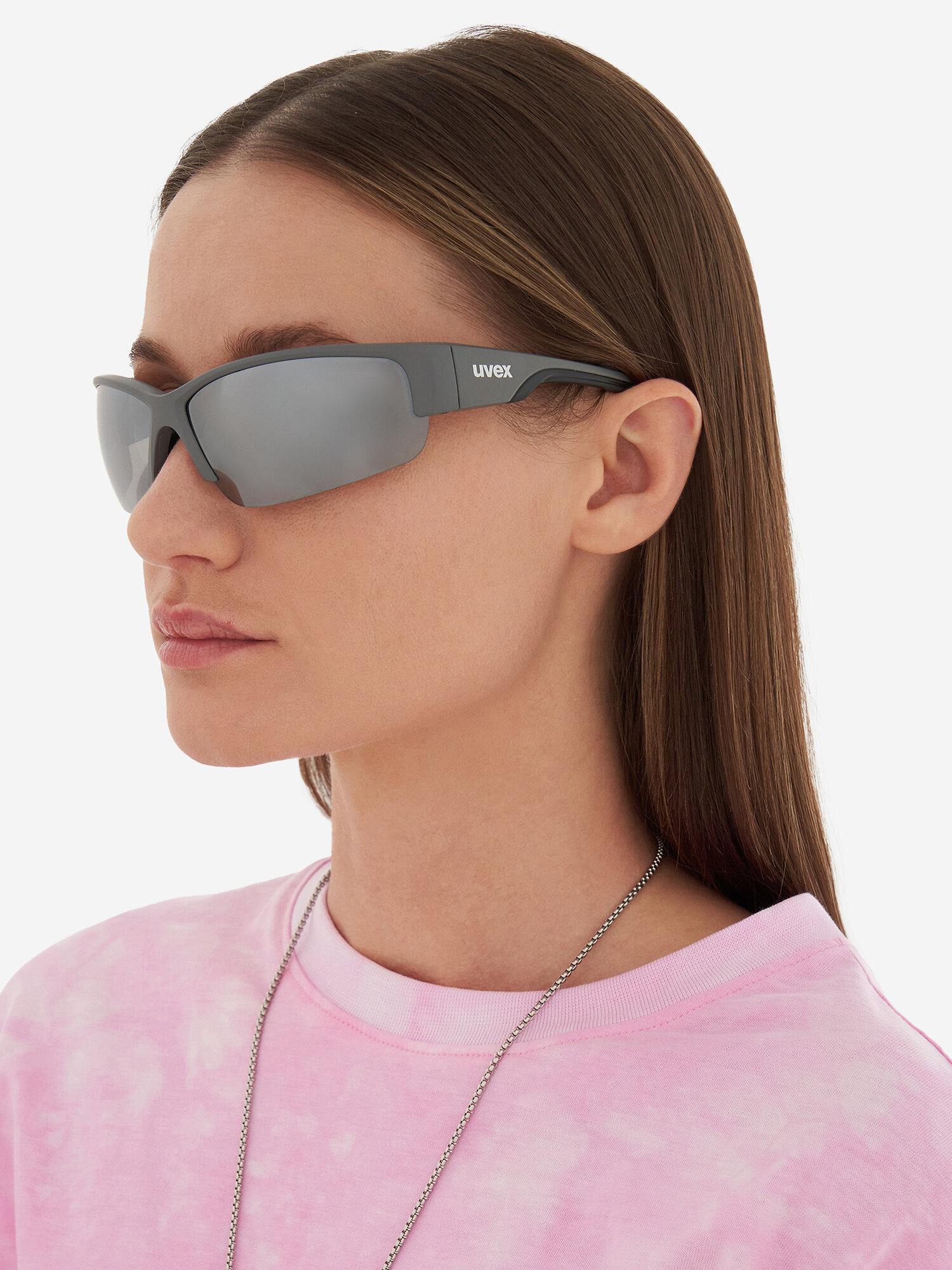 Универсальные очки Uvex для защиты от солнца и занятий спортом. Нескользящие эластичные и гладкие концы дужек и носовой упор из гипоаллергенных материалов предотвращают соскальзывание и исключают неприятное давление. Зеркальное покрытие litemirror рассеивает инфракрасное излучение, обеспечивая дополнительную защиту глаз.