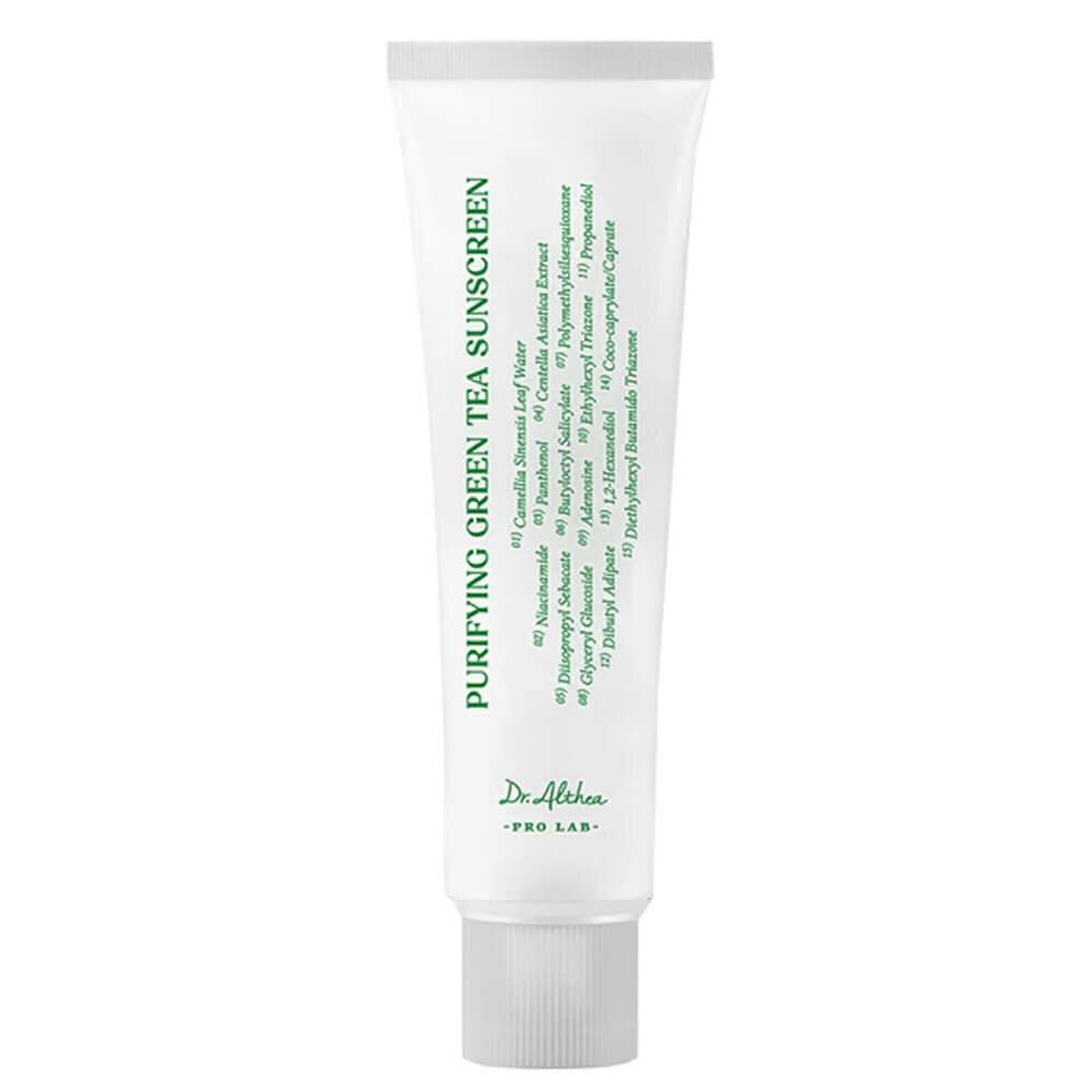 Солнцезащитный крем для проблемной кожи Dr. AltheaPurifying Green Tea Sunscreen SPF 50+PA++++ обеспечивает надёжную защиту от солнечного излучения, а также осуществляет профилактику и облегчает симптомы акне благодаря противовоспалительным и успокаивающим компонентам. Продукт подходит для проблемной и чувствительной кожи с признаками купероза и розацеа. Регулирует активность сальных желёз, сокращает выработку себума, подавляет очаги воспаления. Кремовая текстура санскрина легко распределяется, быстро впитывается, оставляет бархатистый финиш без белых разводов и липкости. Формула средства содержит фотостабильные химические УФ-фильтры нового поколения, которые обеспечивают защиту от солнца, предотвращает ожоги и появление солнечной эритемы. Tinosorb M (Methylene Bis-Benzotriazolyl Tetramethylbutylphenol) — защищает от UVA- и UVB-лучей. Имеет смешанное действие, поглощая и отражая ультрафиолетовое излучение. Uvinul T 150 (Ethylhexyl Triazone) защищает от UVB-излучения. Iscotrizinol/Uvasorb HEB (Diethylhexyl Butamido Triazone) — супер-фотостабильный фильтр широкого спектра действия, защищает от UVA и UVB-лучей. Основные действующие компоненты: Ниацинамид (витамин B3, 2%) замедляет доставку меланина к эпидермису, предотвращает образование пигментных пятен, снижает чувствительность к внешним раздражителям, выравнивает тон, способствует производству коллагена и повышению тургора. Пантенол (витамин В5) восстанавливает целостность рогового слоя, оптимизирует барьерные функции, ускоряет заживление микроповреждений, снимает покраснение и раздражение, обладает ранозаживляющими свойствами. Экстракт центеллы азиатскойспособствует восстановлению барьерных свойств кожи и удержанию влаги, снижает чувствительность, уменьшает отёки, оказывает сосудоукрепляющее действие и препятствует развитию купероза. Экстракт листьев зелёного чая (2%) — природный антиоксидант, тонизирует и глубоко увлажняет, предупреждает появление акне, снимает зуд и раздражение. Подходит для нормальной, жирной комбинированной, проблемной и чувствительной кожи. Способ применения: после всех этапов дневного ухода нанесите примерно 1,2 мл средства на лицо и шею за 15-20 минут до выхода на улицу. Во время нахождения под прямыми солнечными лучами (например, на пляже)