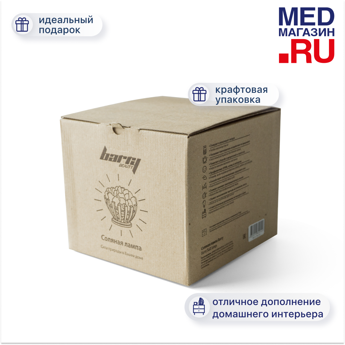 Каждая соляная лампа поставляется в коробке, полностью изготовленной из эко-материалов. Вам обязательно понравится стильный дизайн упаковки, благодаря чему лампа станет не только визуально привлекательным подарком, но и полезным приобретением абсолютно для всех.