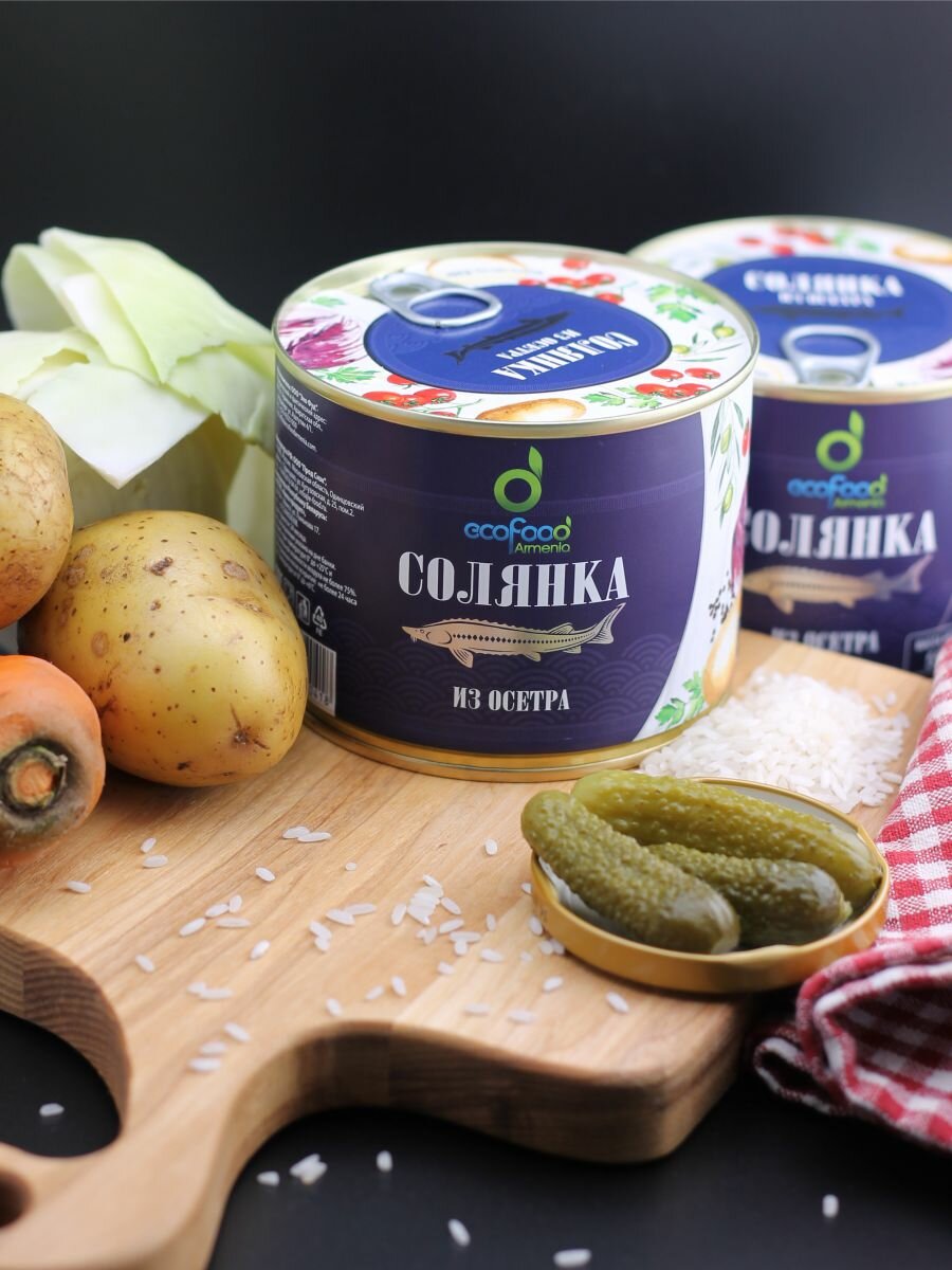 | Состав | осетр, рис, морковь, картофель, томаты, оливки, петрушка, томаты, оливковое масло, растительное масло, лимонный сок, соль, вода |