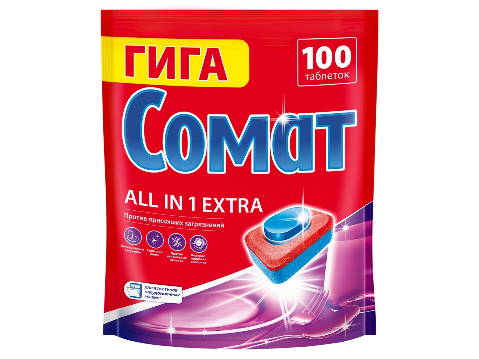 Таблетки для посудомоечной машины Сомат Все-в-1 Экстра, 100шт: сравнение цен, характеристики, фото, актуальное наличие и цены.
