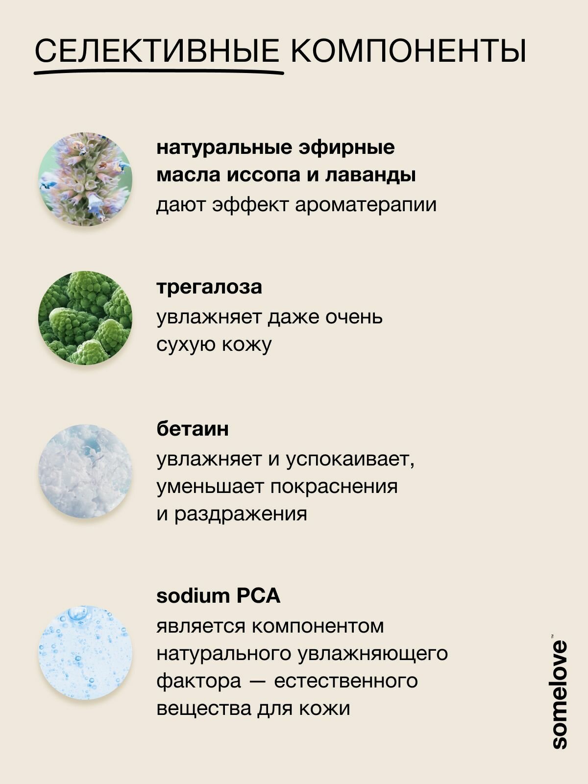 | Не содержит | искусственные консерванты, искусственные красители, камфора, минеральные масла, нефтепродукты, парабены, петролатум, продукты животного происхождения, пропиленгликоль, силиконы, соли алюминия, спирт, сульфаты, формальдегиды, фталаты, фтор |
