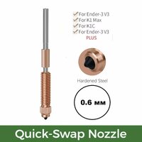 Сопло 0,6 мм быстросъёмное совместимое с Сreality K1C, K1 Max, Ender-3 V3, Ender 3 V3 Plus. Сопло Unicorn Creality 0,6 мм для быстрой замены.: сравнение цен, характеристики, фото, актуальное наличие и цены.
