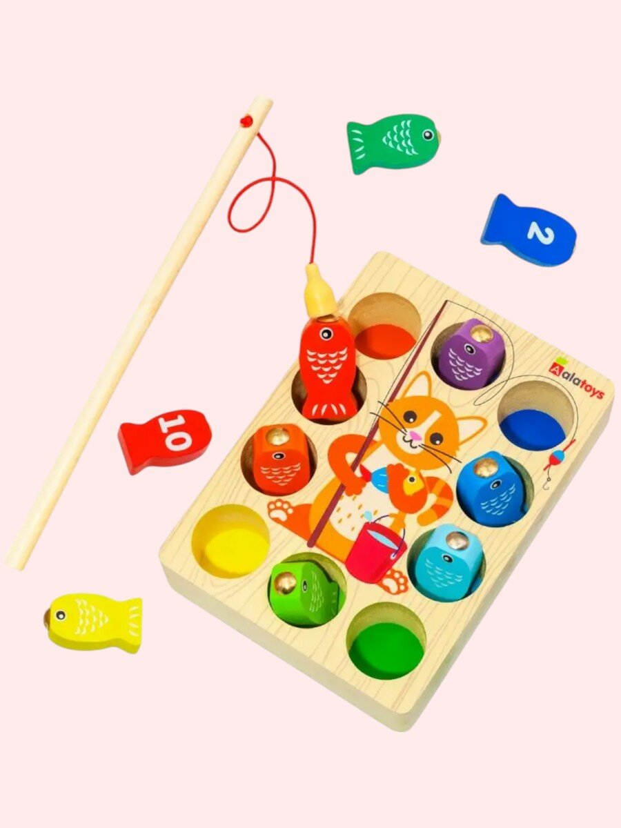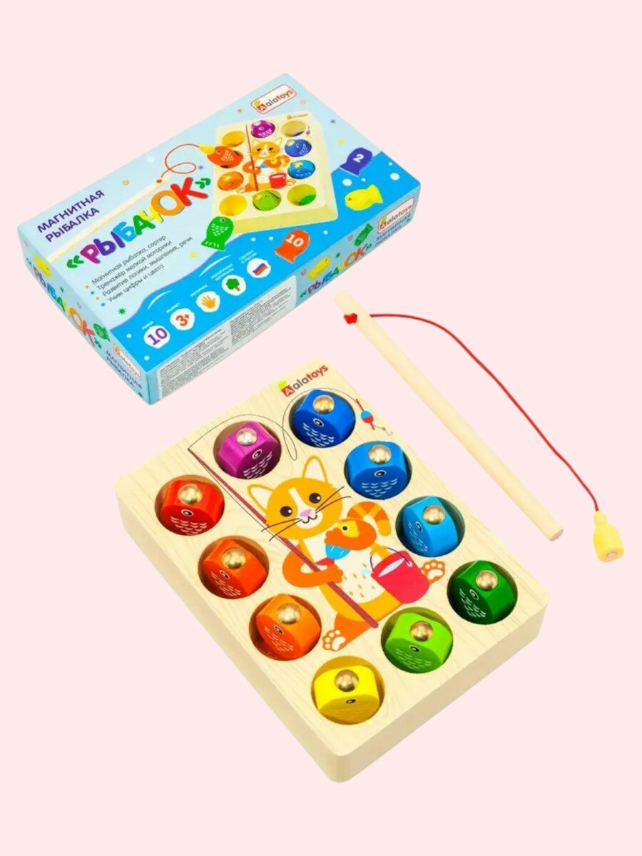 Представляем вашему вниманию увлекательную магнитную рыбалку в форме милого котика, созданную специально для самых маленьких! Эта игра из натурального дерева не только подарит вашему ребенку множество часов веселья, но и станет отличным помощником в развитии важных навыков. В маленьких отверстиях котика скрыты яркие рыбки с магнитами, которые юному рыболову предстоит ловить с помощью удобной удочки. На каждой рыбке изображены цифры, что делает игру не только занимательной, но и образовательной — ваш ребенок легко освоит счет до 10! Эта игрушка прекрасно развивает координацию движений и мелкую моторику. Яркие расцветки рыбок помогут малышам познакомиться с цветами, а различные варианты усложнения игры, такие как ловля рыб только определенного цвета или кратных чисел, добавят элемент соревнования и увлекательности. В комплект входят 10 разноцветных рыбок и одна удочка с магнитом, а также основание в форме котика (размер 17x15 см), что делает эту игру идеальным выбором для совместного времяпрепровождения и обучения. Подарите своему ребенку радость игры и возможность развиваться с удовольствием!