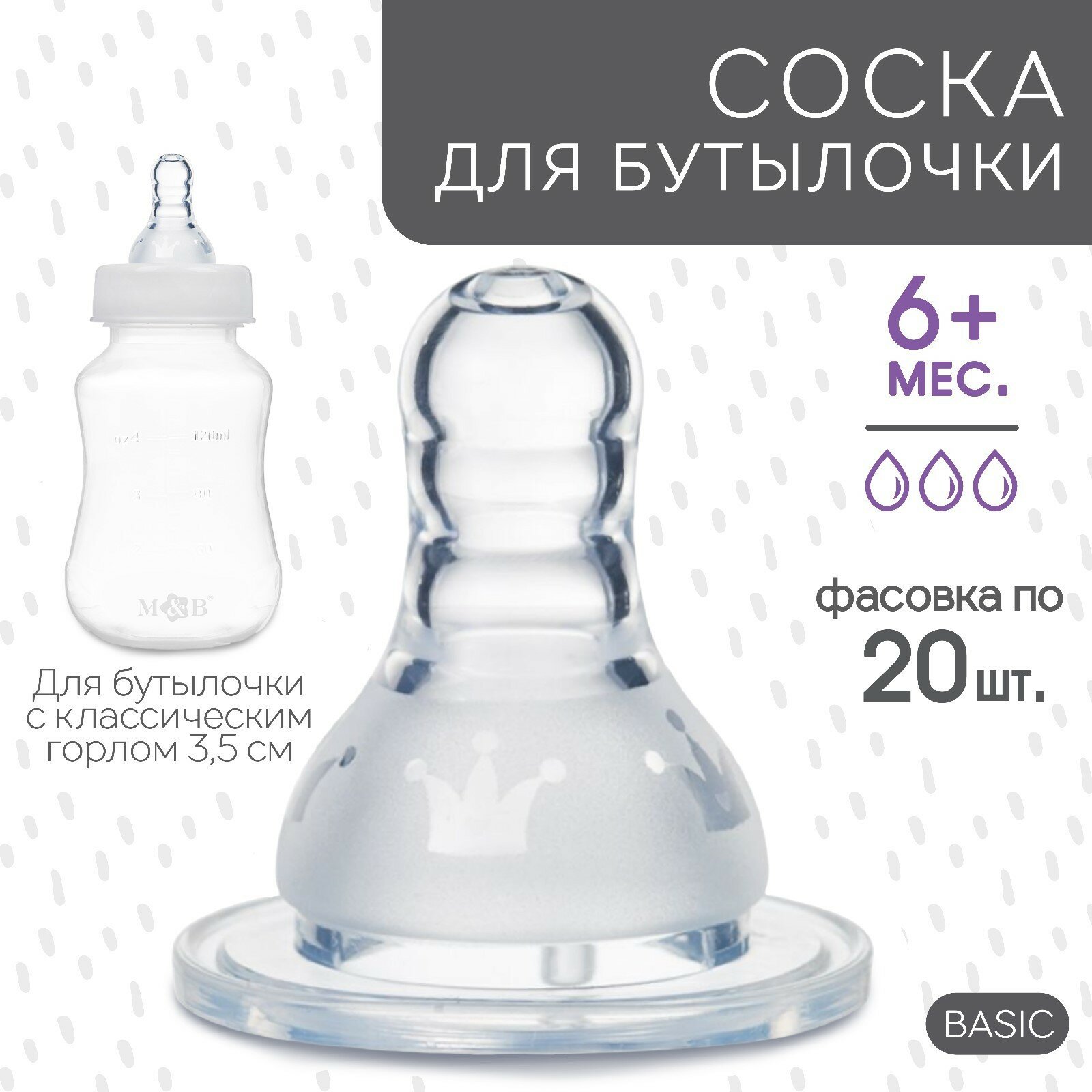 Соска для бутылочки, +6мес, быстрый поток, классическое горло 35мм. (фасовка по 20шт) (20шт.): сравнение цен, характеристики, фото, актуальное наличие и цены.