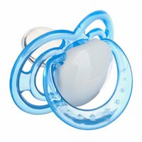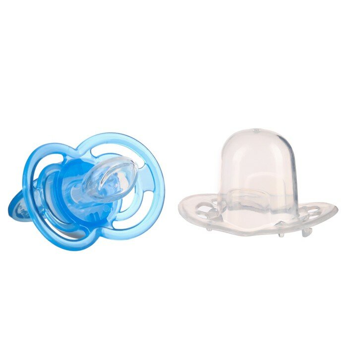 Соска — пустышка силиконовая ортодонтическая M&B, от 12 мес, с колпачком, голубой/белый: сравнение цен, характеристики, фото, актуальное наличие и цены.