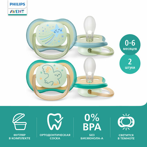 Соска-пустышка силиконовая светящаяся Philips Avent ultra air night SCF376/18 с футляром для хранения и стерилизации, 0-6 мес, 2 шт.: сравнение цен, характеристики, фото, актуальное наличие и цены.