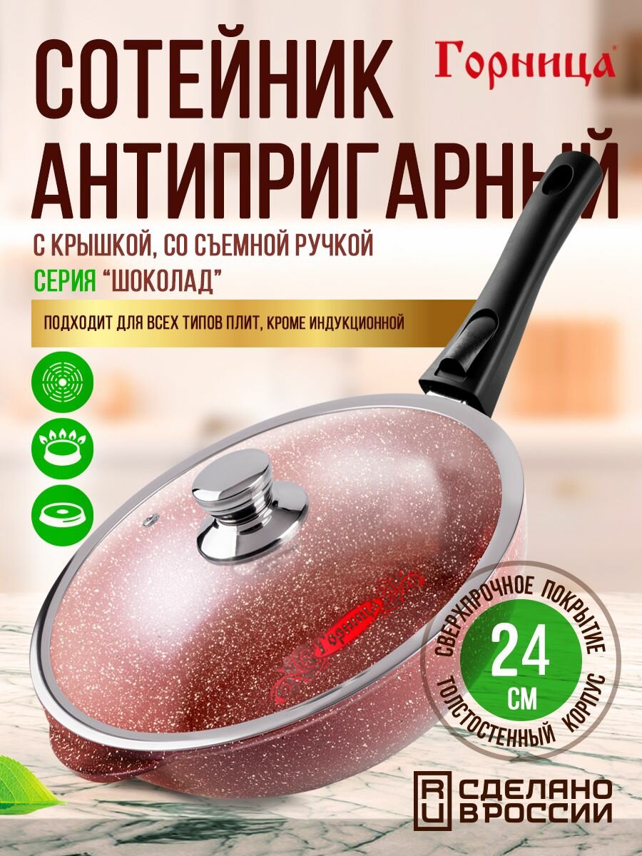 Купить Сотейник антипригарный литой 24см со съемной ручкой и стеклянной крышкой Шоколад ТМ Горница с доставкой по всей России. Сотейник антипригарный литой 24см со съемной ручкой и стеклянной крышкой Шоколад ТМ Горница: сравнение цен, характеристики, фото, актуальное наличие и цены.
