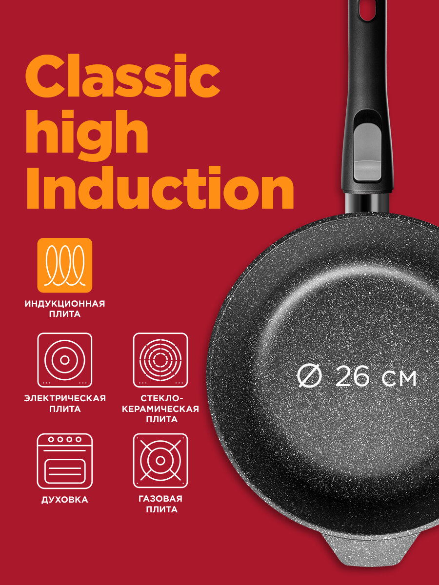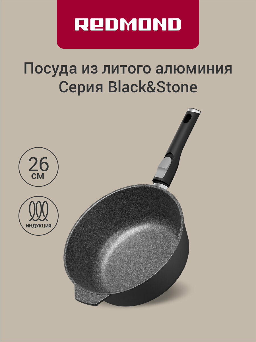 Купить Сотейник из литого алюминия индукционный REDMOND 26 cм PF5506, высокие стенки, толстое дно, съемная ручка, для духовки с доставкой по всей России.
