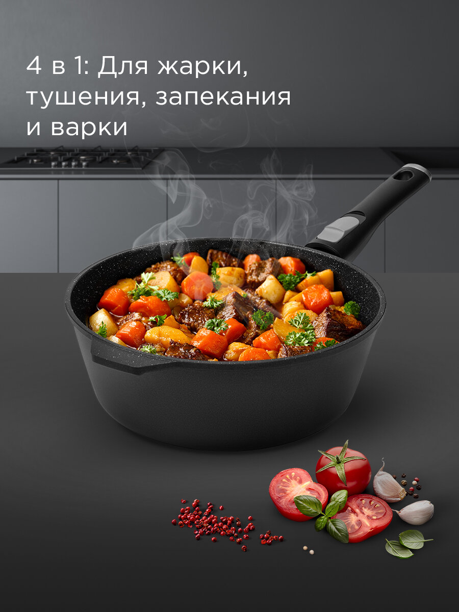 Сотейник из литого алюминия индукционный REDMOND 26 cм PF5506, высокие стенки, толстое дно, съемная ручка, для духовки: сравнение цен, характеристики, фото, актуальное наличие и цены.